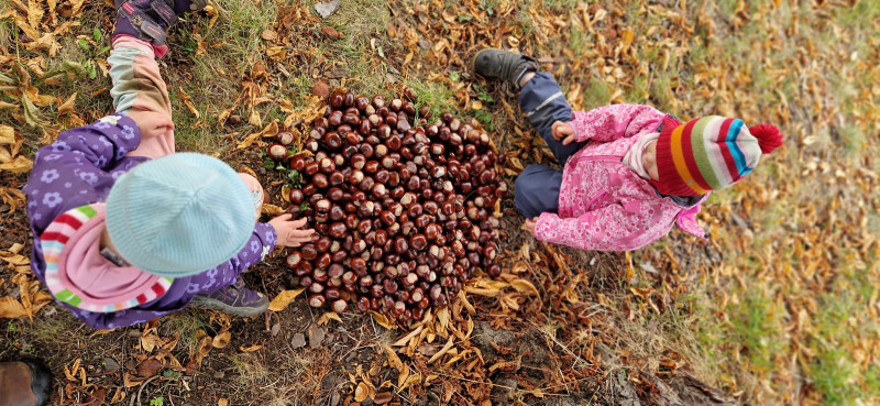 Es gibt folgende Besonderheiten: Gesunde Ernährung, Montessoripädagogik, viel Zeit draußen, Verzahntes Modell
